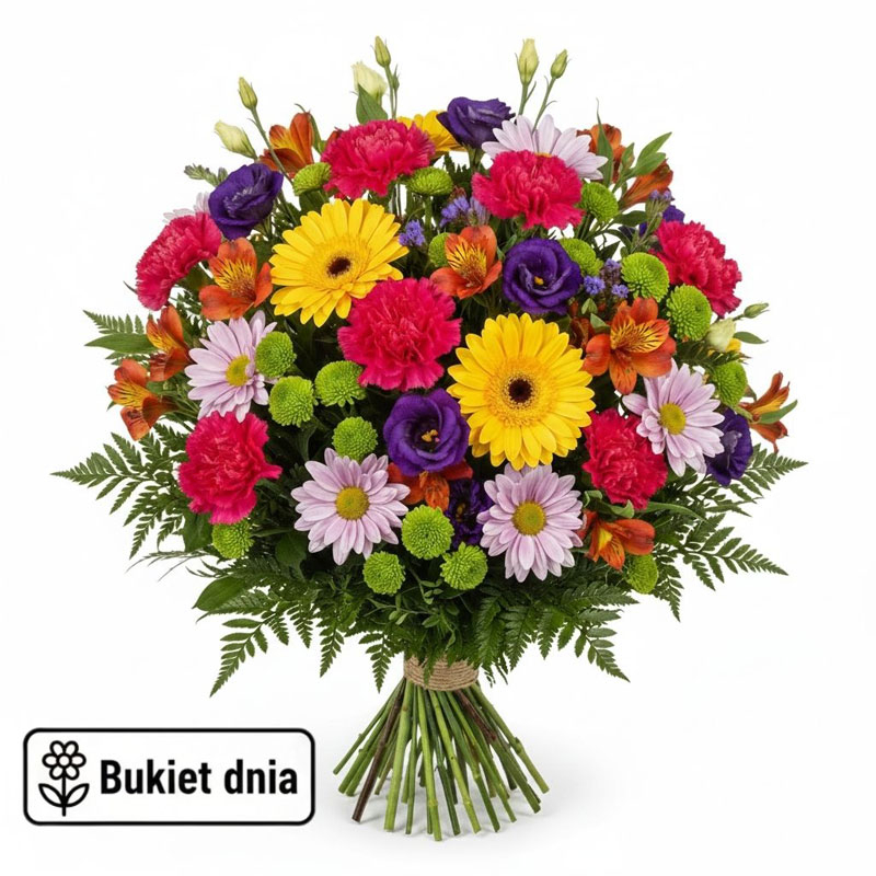 Bukiet Dnia dostępny w Opolu to indywidualnie przygotowywana kompozycja florystyczna, która każdego dnia wygląda inaczej. Florystka dobiera kwiaty według aktualnej dostępności i własnego uznania. W kompozycjach wykorzystywane są kwiaty sezonowe oraz całoroczne, dzięki czemu bukiet zachwyca świeżością i naturalnym stylem. To idealny wybór na prezent. Zamów bukiet z dostawą na terenie Opola i ciesz się wygodną realizacją.