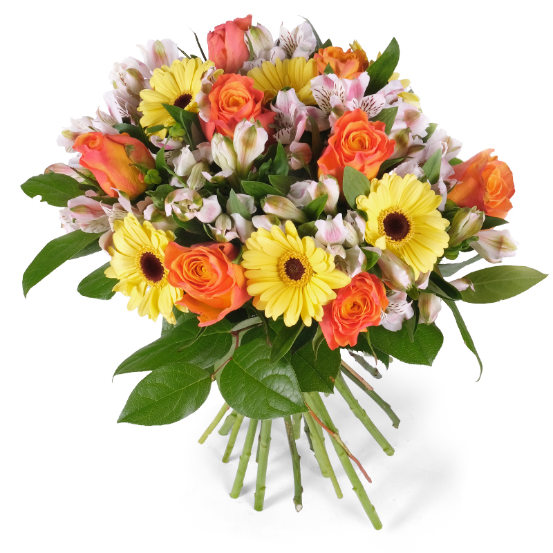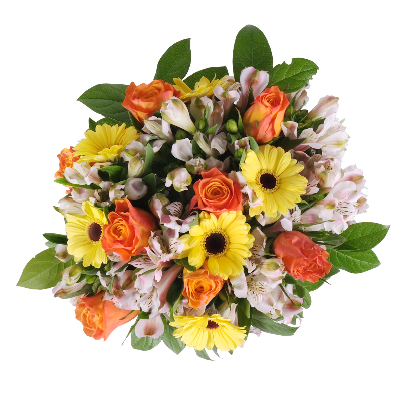 Nietuzinkowa kompozycja róż, gerber i alstromerii w otoczeniu naturalnych liści emanuje ciepłem i przytulnością. To idealny prezent, gdy chcesz przekazać wsparcie, pocieszenie lub po prostu pokazać bliskość. Niech kwiaty mówią za Ciebie.