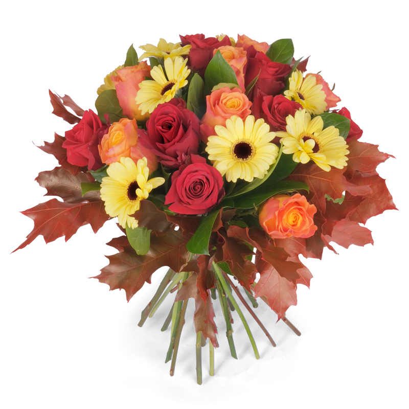 Ten bukiet to symbol wdzięczności i dobrego smaku. „Obfita Jesień” łączy w sobie subtelność róż, wdzięk gerber i szlachetność liści klonu. To kompozycja, która urzeka swoją prostotą. Idealna na prezent lub dekorację. Bukiet, który wywołuje ciepłe emocje. Możesz dodać liścik!